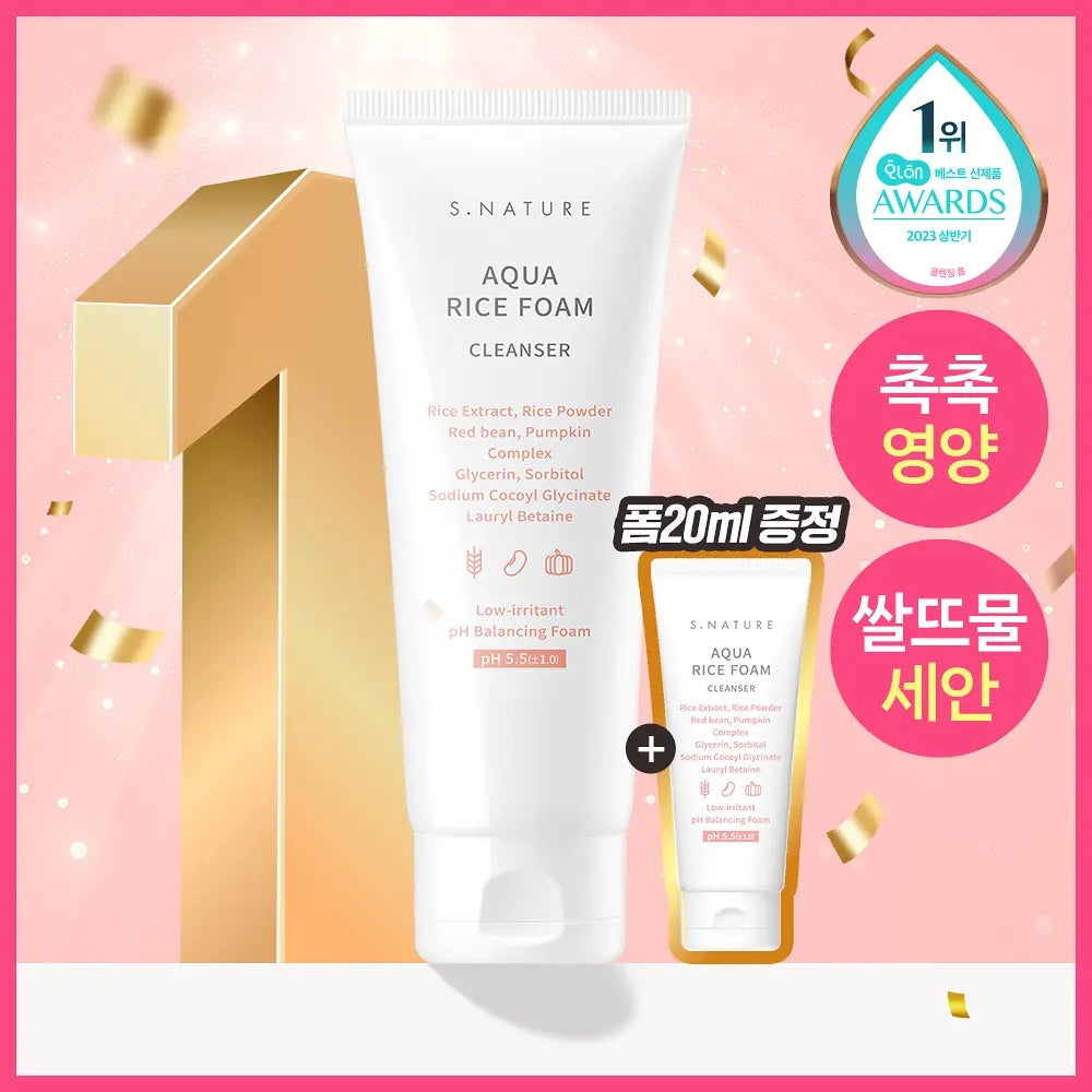 韓國Hwahae榜單第1名🔥S.NATURE 大米水分弱酸性潔面乳 | 溫和清潔不緊繃 敏感肌首選⭐️