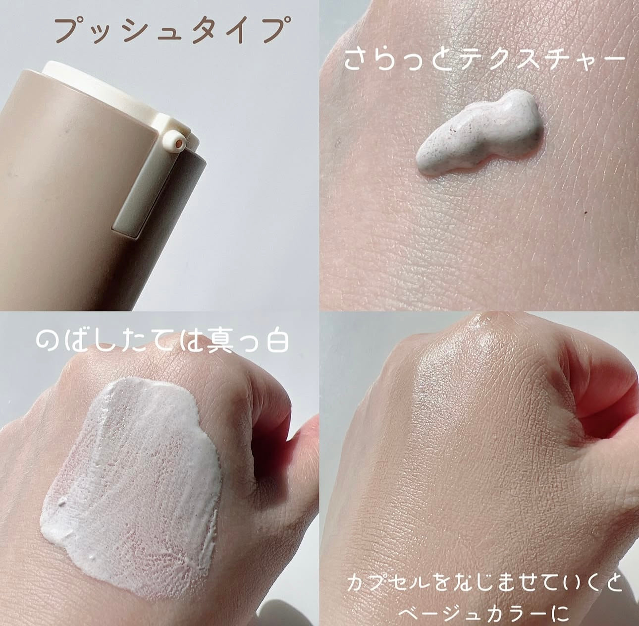 擠出來是白色乳液、揉開瞬間4 色粒子會根據體溫與膚色自動偵測、並轉變成適合自身的膚色、精準修飾🔥