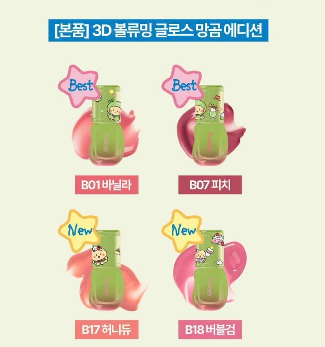 附送土豆熊舒壓捏捏球🐻Fwee x 土豆熊3D 豐盈水光唇釉聯名限定3D Voluming Gloss