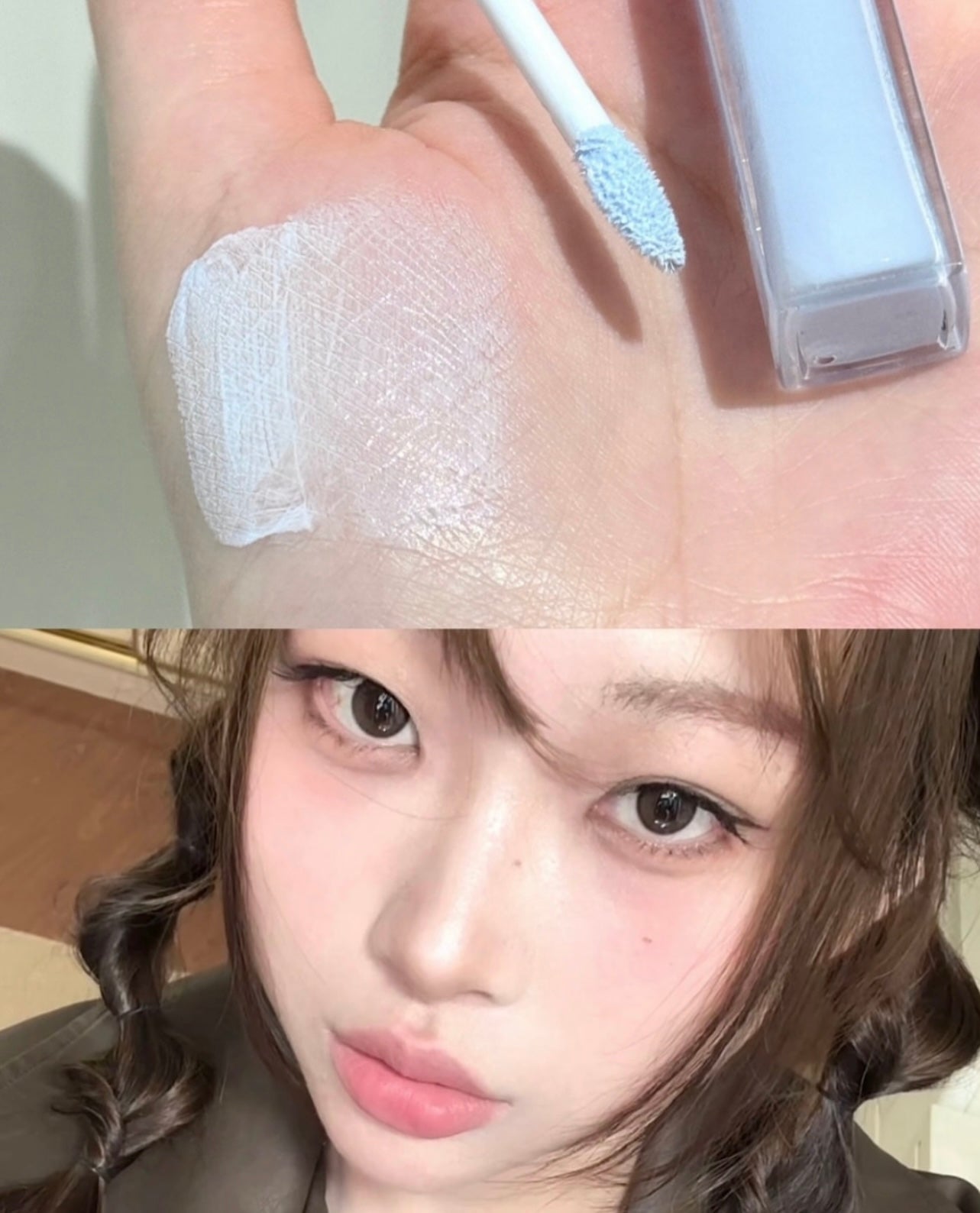 少量多次點塗在眼下三角、鼻梁、臉頰高處,妝感輕盈自然