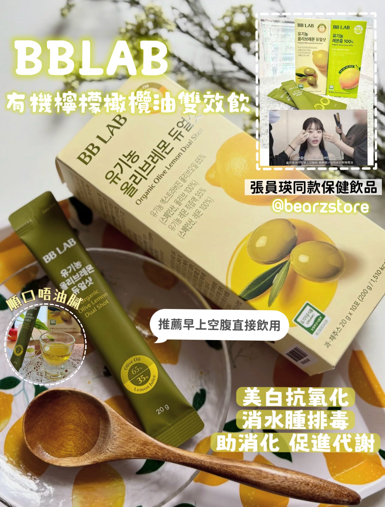張員瑛同款保健飲品🔥 BBLAB有機檸檬橄欖油雙效飲💛🍋